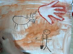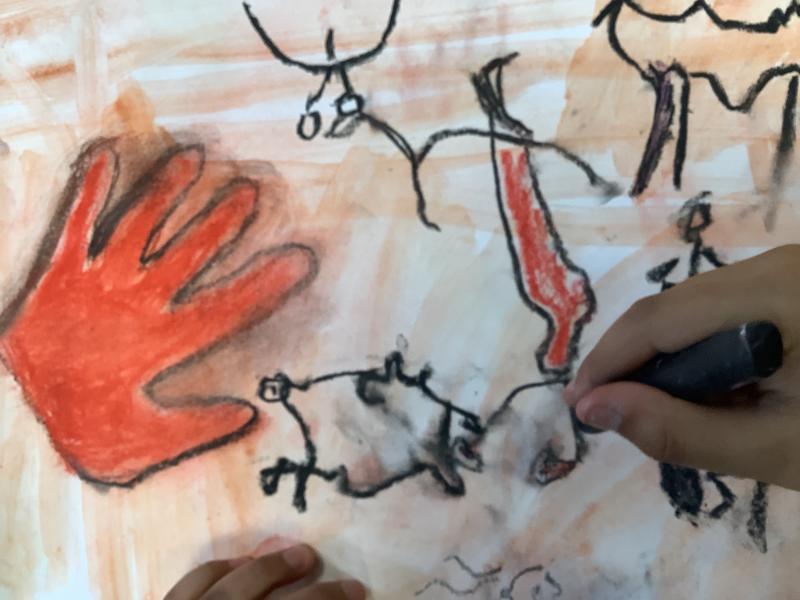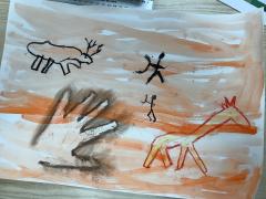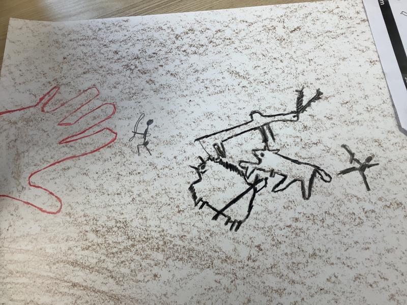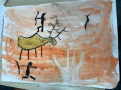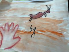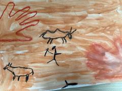 With 3HL on a trip, we spent the day exploring cave art. We looked at examples, famous caves full of art and wondered what they meant. We practised our own designs, we then did large pieces to make a cave full of art to explore in class. We made the room dark and used torches to explore the "cave" like real archaeologists.