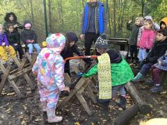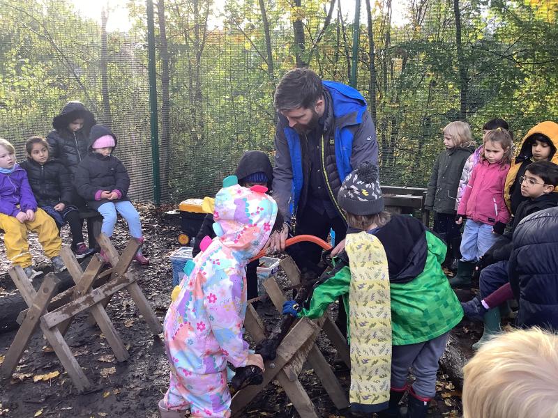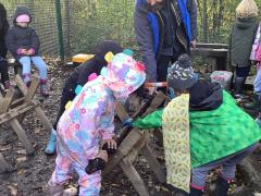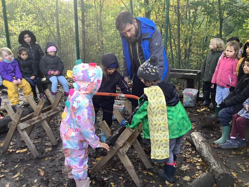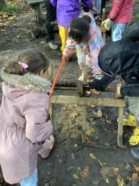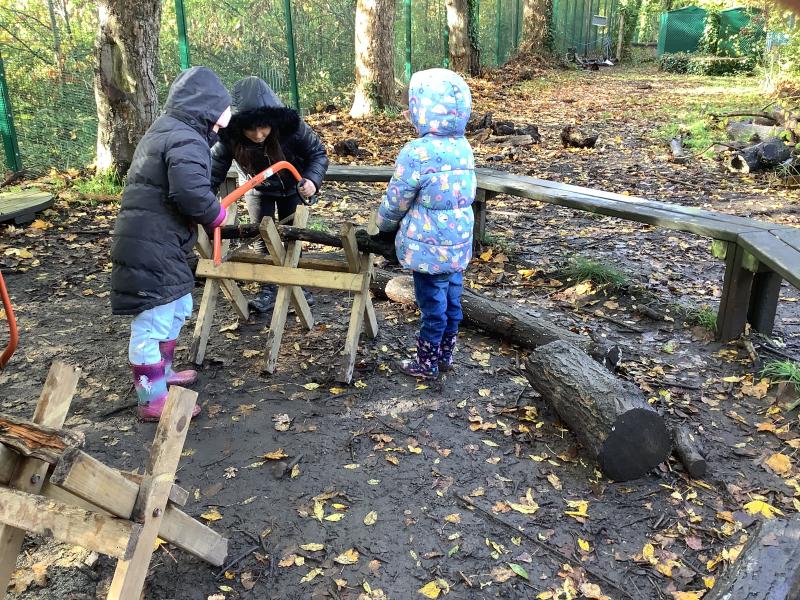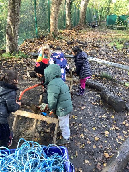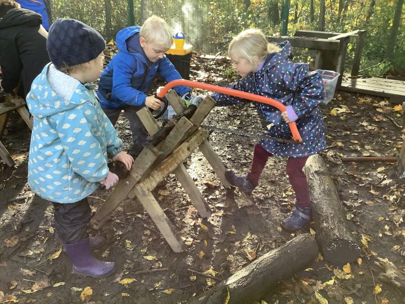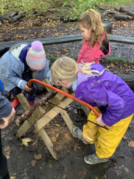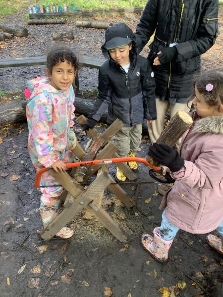 Children learned how to use a bow saw, built shelters and played in the outside areas.
